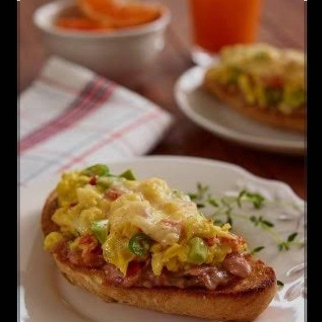 Molletes Montados con Huevo a la Mexicana