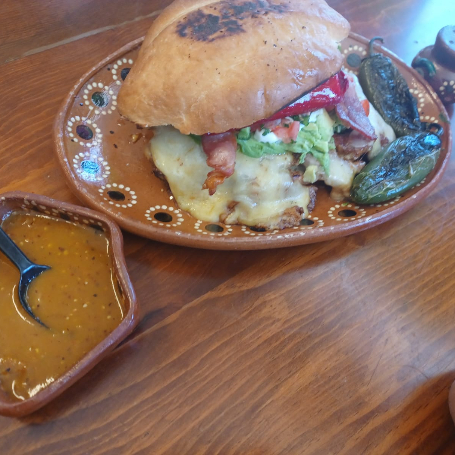 Incluye lechuga, tomate, aguacate, cebolla y mayonesa. Acompañada con papas a la francesa.
