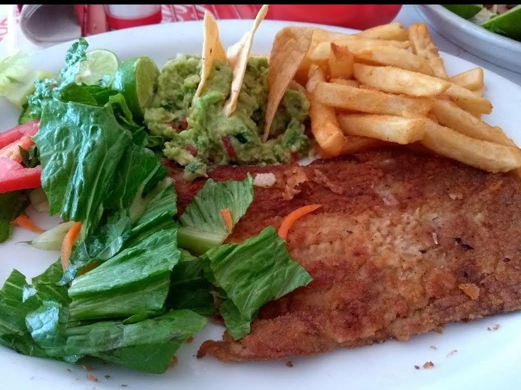 Acompañado con arroz y frijoles. + Gratis Agua de Sabor