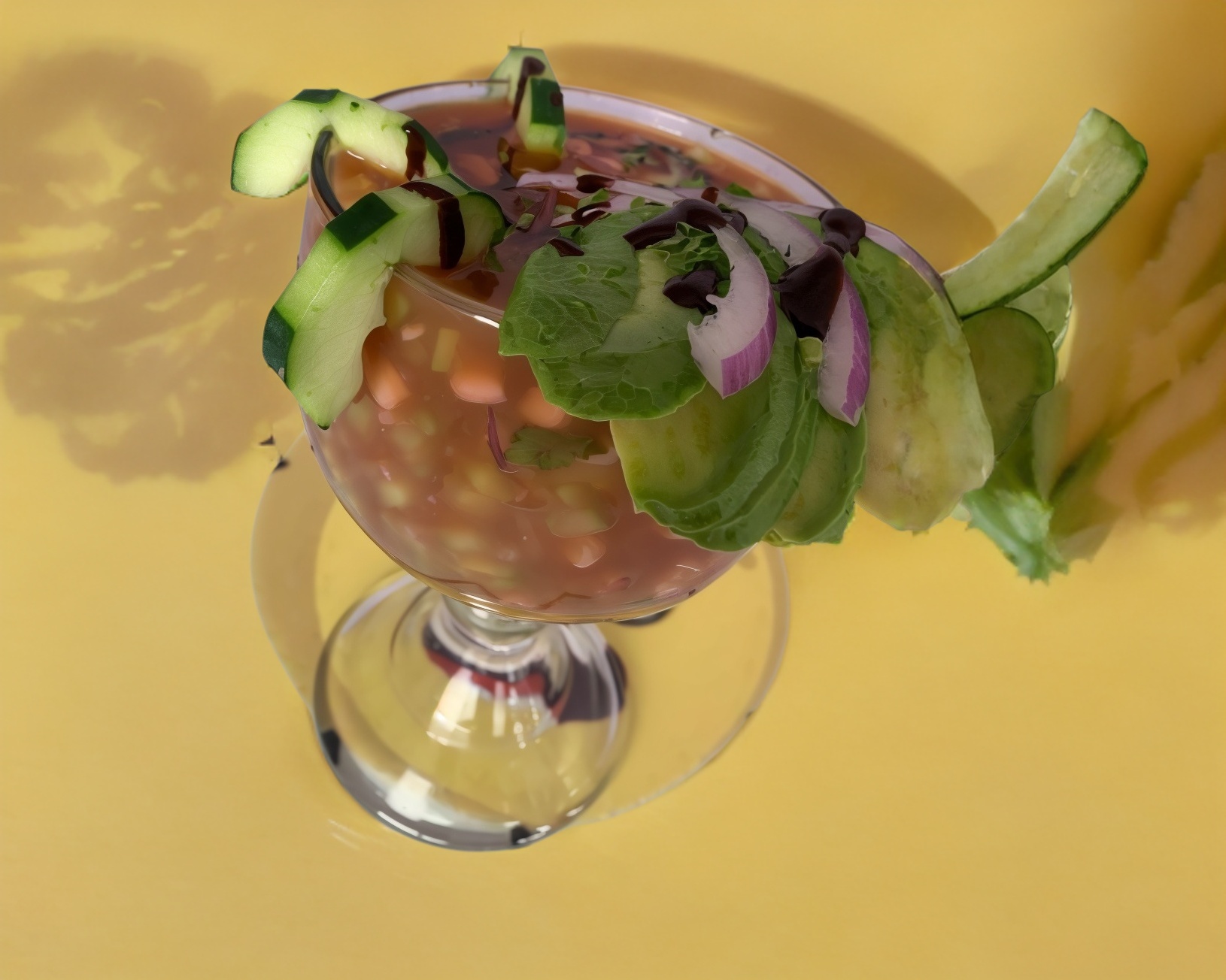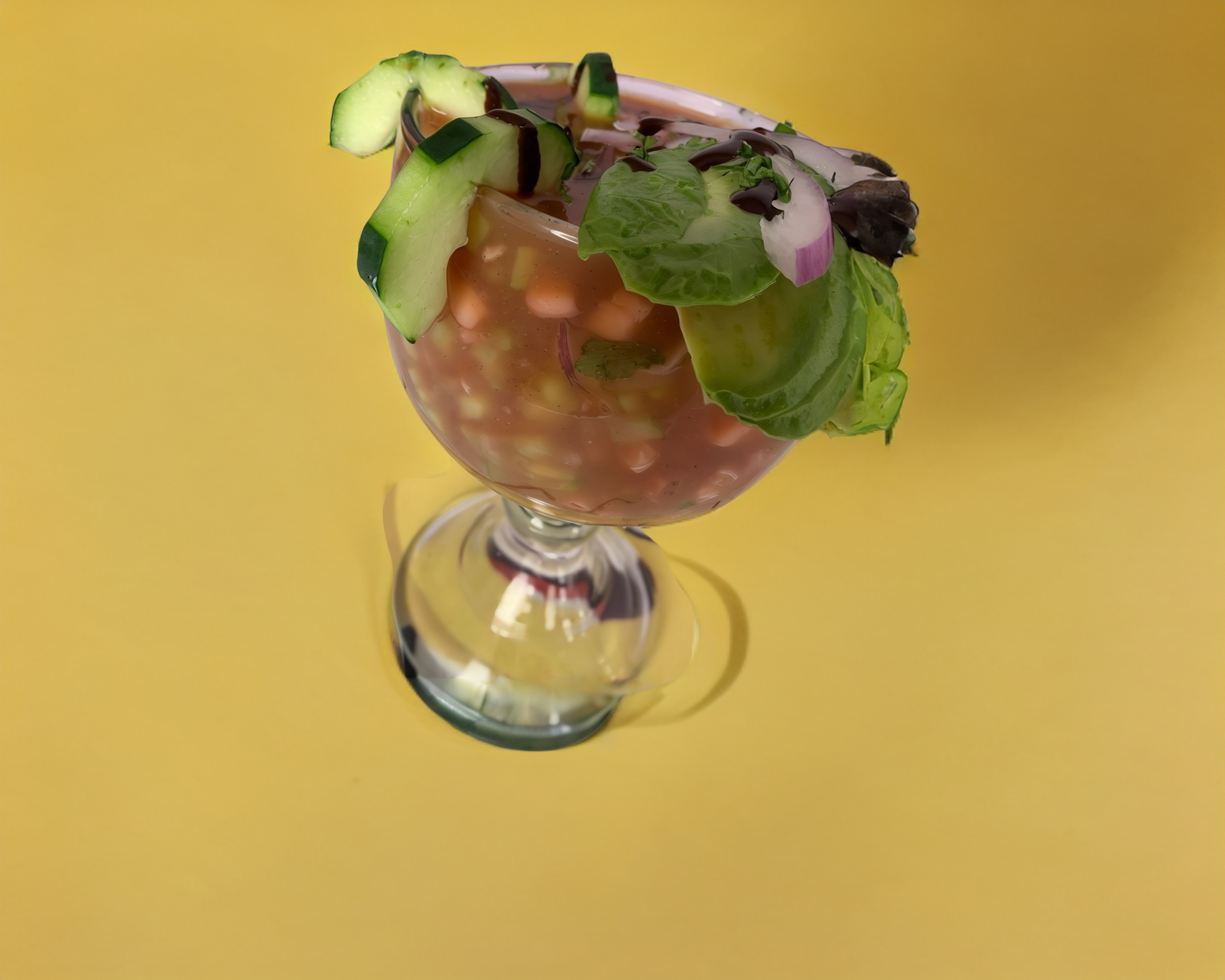 amaron cocido, pepino, apio, pico de gallo, cebolla, aguacate, cilantro, combinado con un delicioso jugo coctelero.
