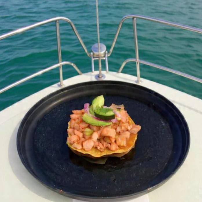 pescado-caracol-almeja chcocolata(pepino-aguacate-cebolla-pico de gallo)