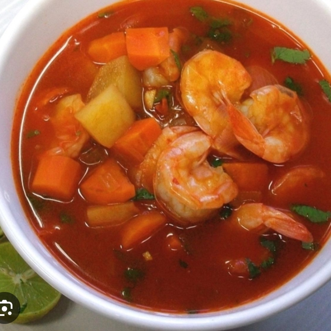 Camarones cocidos en caldo rojo de chiles secos y jitomate, con verduras y notas cítricas. Ideal para el antojo costeño.