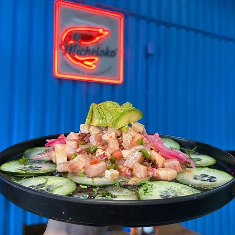 Camarón crudo y/o cocido marinado en jugo de mango fresco, limón y habanero, con cebolla morada, cubos de mango, pepino y un toque de cilantro. Equilibrio entre dulzor y picor.