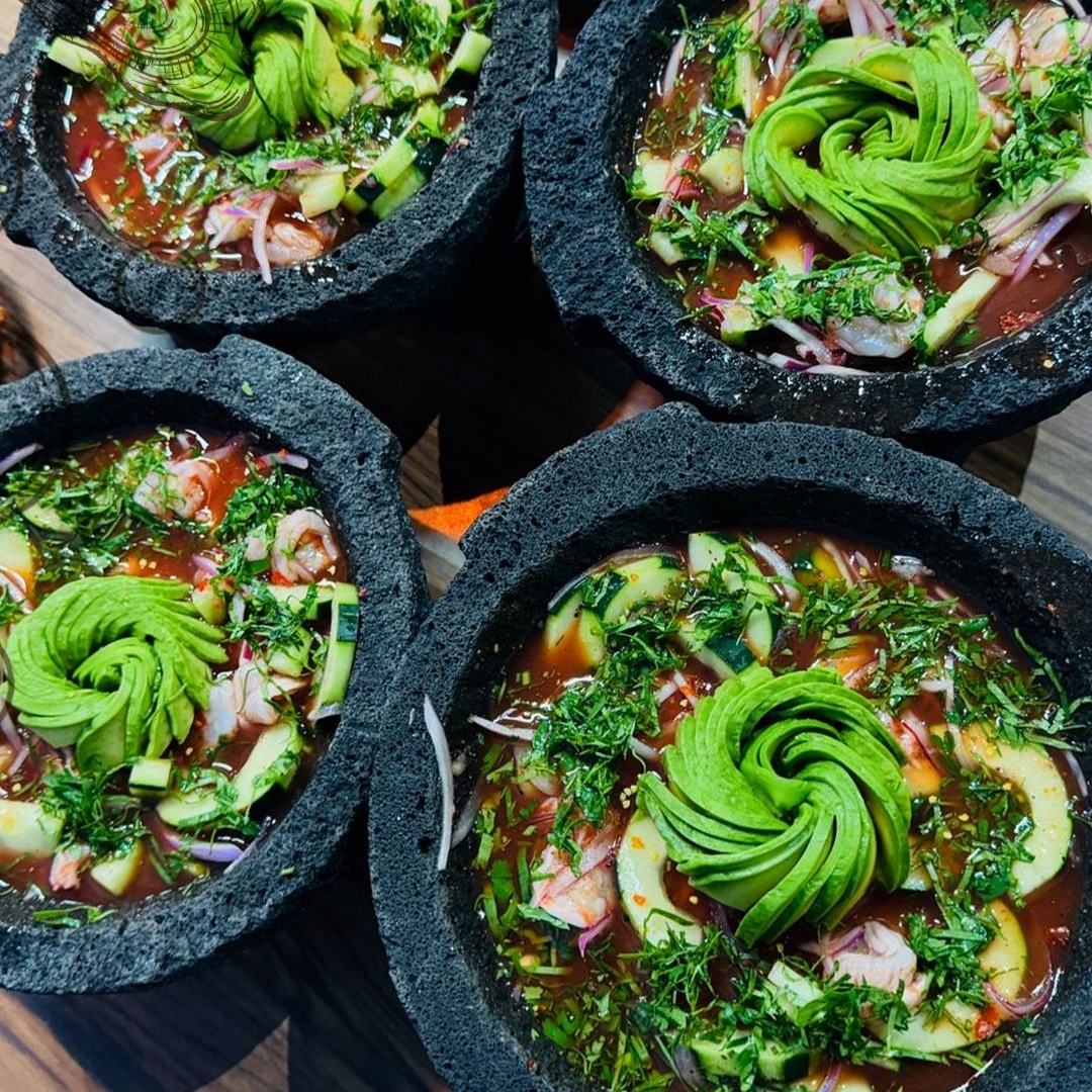 Camarón crudo y/o cocido marinado en jugo de limón, salsa de chile serrano, pepino, cebolla morada y cilantro fresco. Tradicional y vibrante.