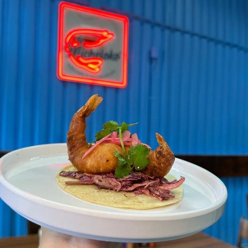 Delicado filete de pescado empanizado al estilo baja, servido en tortilla de maíz con col encurtida, aderezo cremoso de chipotle y un toque de limón fresco.