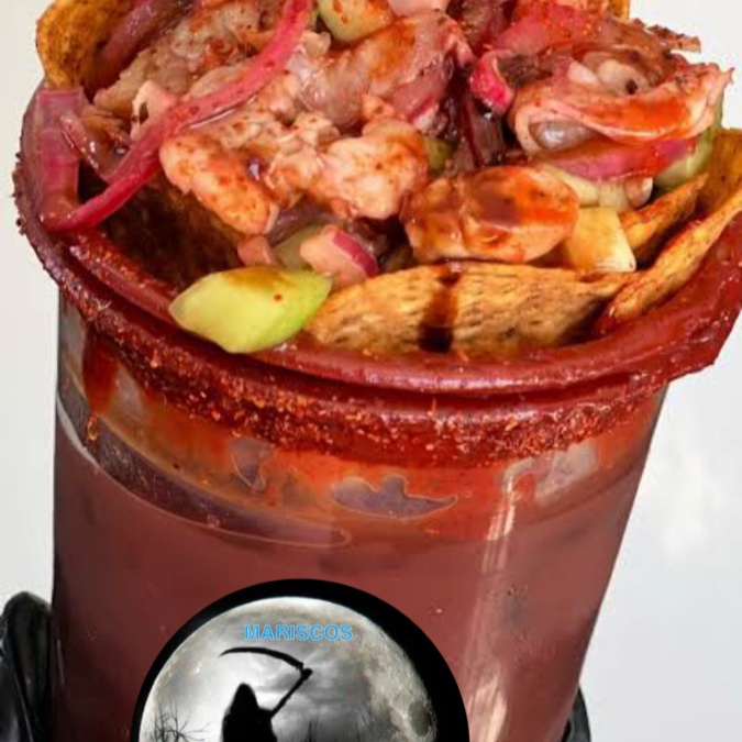delicioso clamato con guarniciones de camaron aguachile