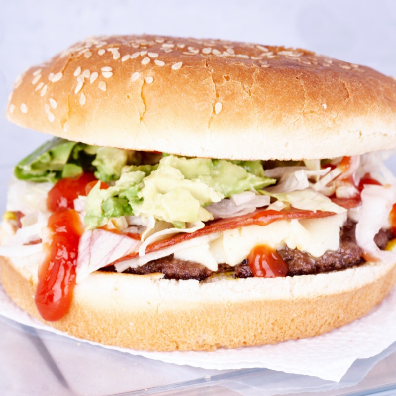 Con aguacate, jamón, queso, lechuga y tomate