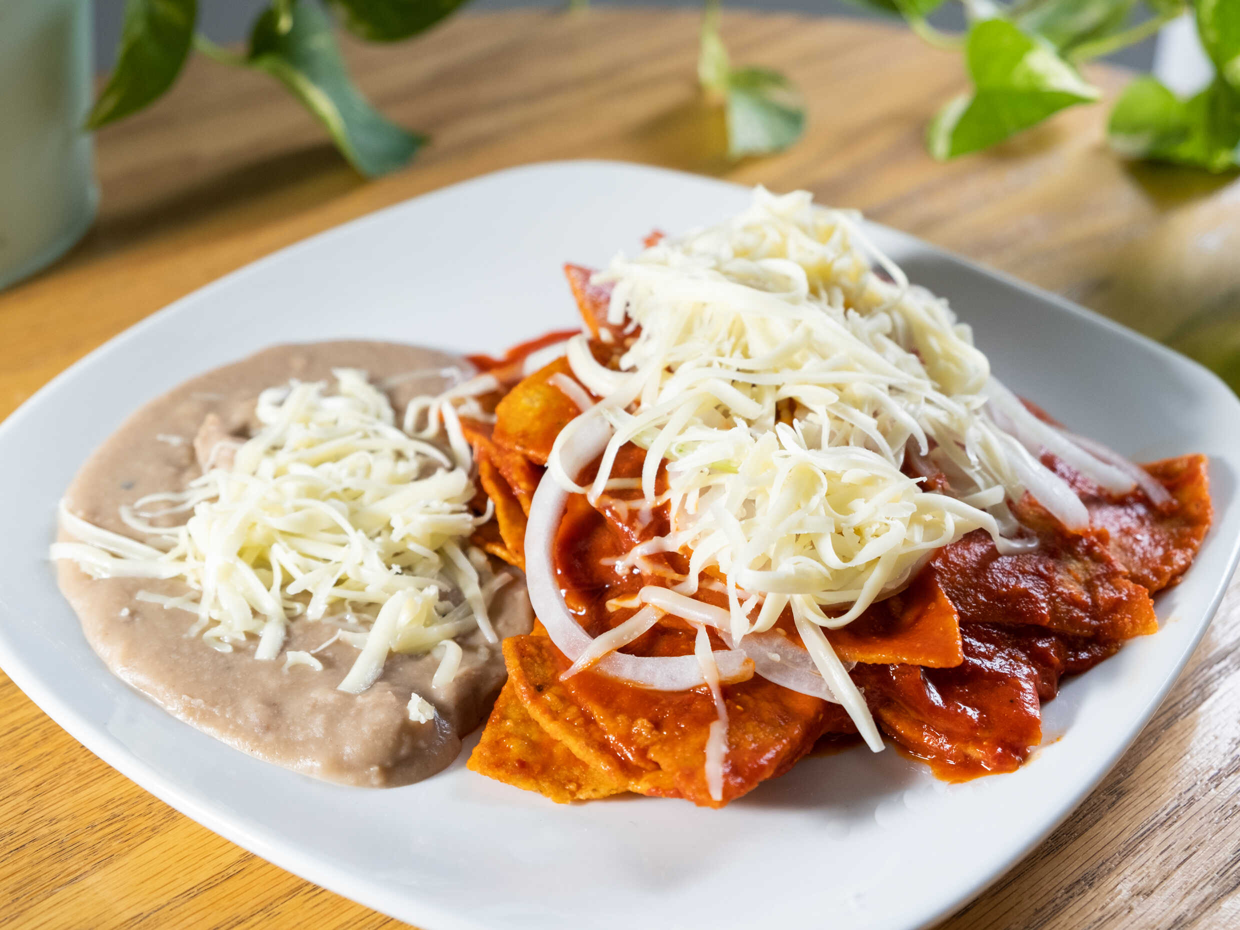 En salsa roja o verde, acompañados de frijoles. Agrega extra pechuga de pollo, huevo o arrachera.