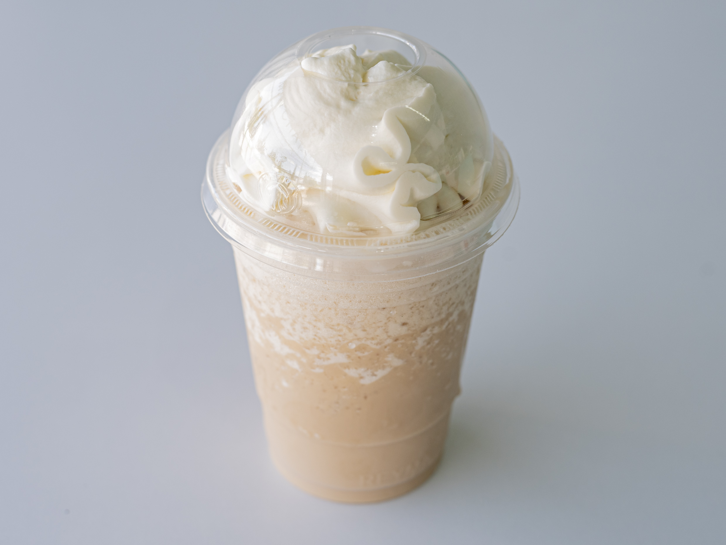 Mezcla de café espresso, leche, hielo molido y crema batida opcional.