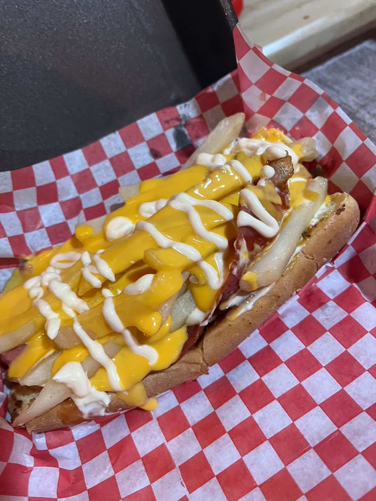 Tocino Tomate Aderezos Frijoles Papas francesas Queso amarillo Mayonesa