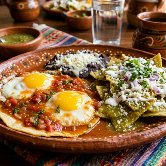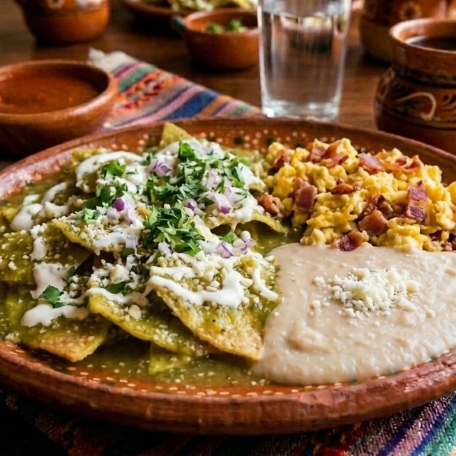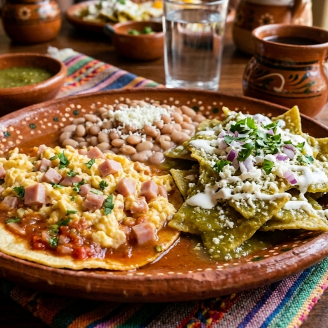 Incluye frijoles refritos y chilaquiles.