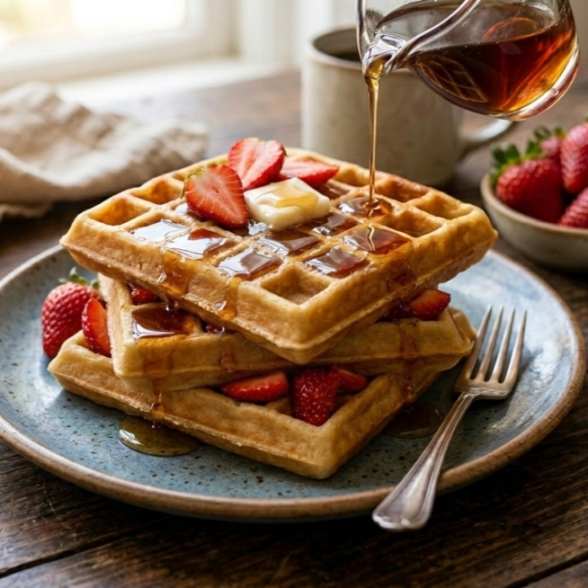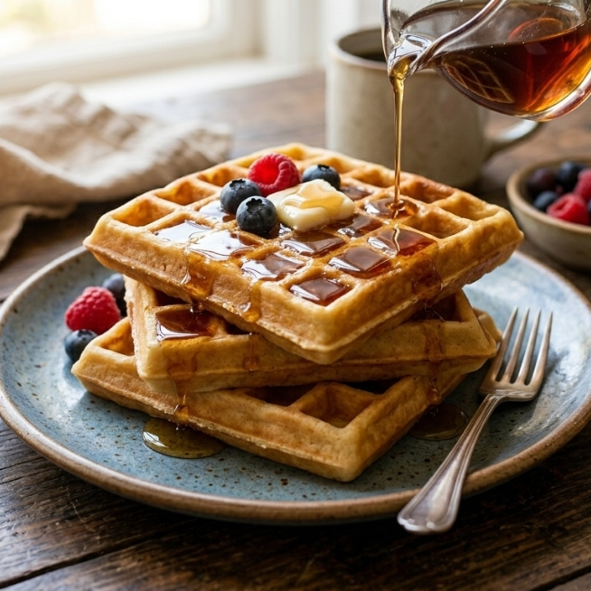 Waffles con Miel Maple