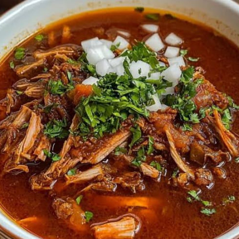 Exquisita birria de res en caldo incluye(repollo, cilantro, cebolla,