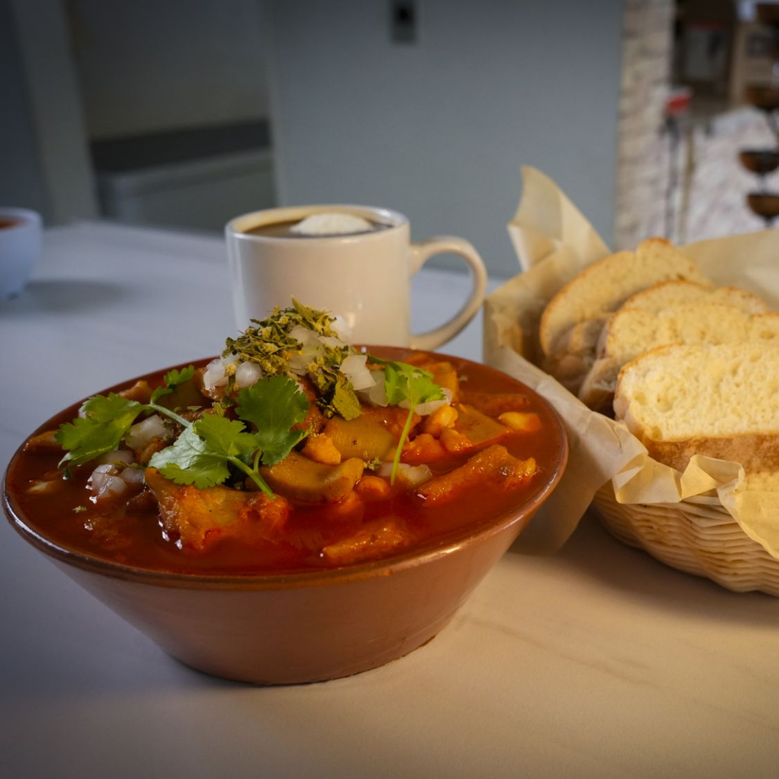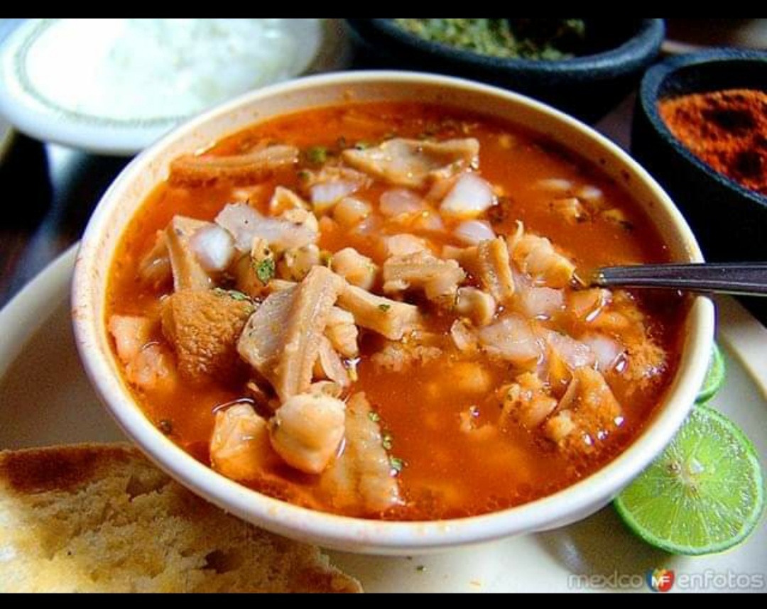 Maíz y pancita. (Incluye cebolla, salsa de chile de árbol, orégano y limón)