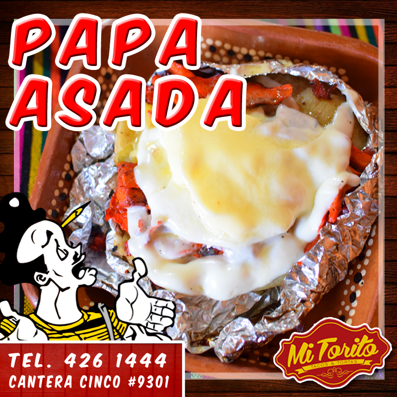 Papa Asada con carne al Pastor, Mantequilla y Queso