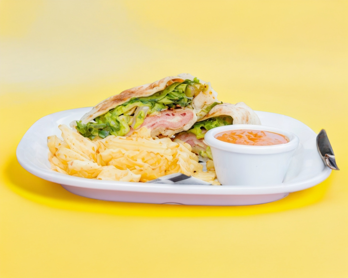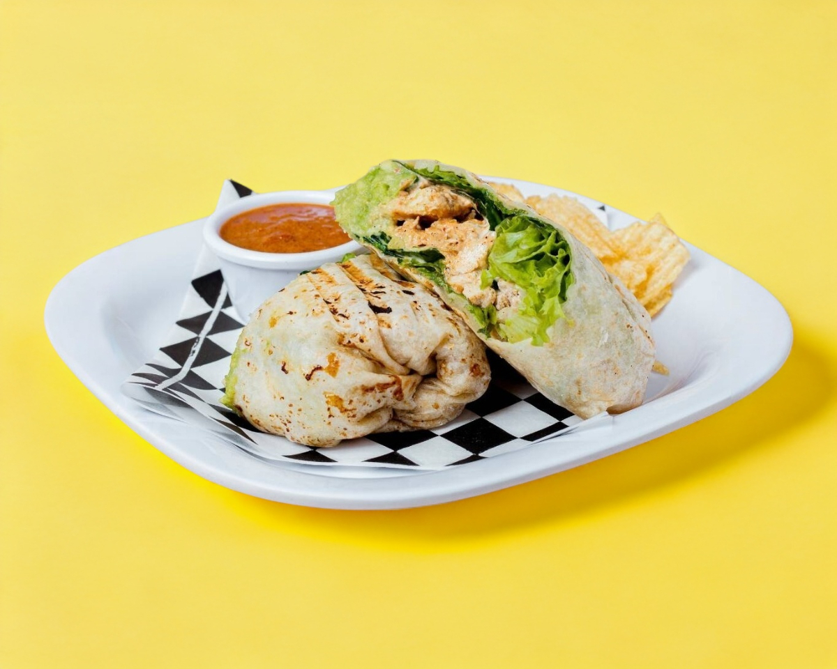 Pollo a la plancha, queso asadero, aguacate, salsa chipotle y vegetales. Incluye papas chips y salsa de la casa a escoger.
