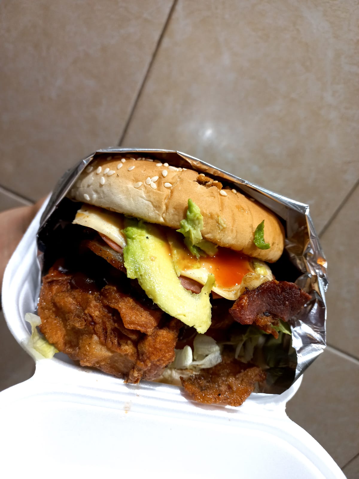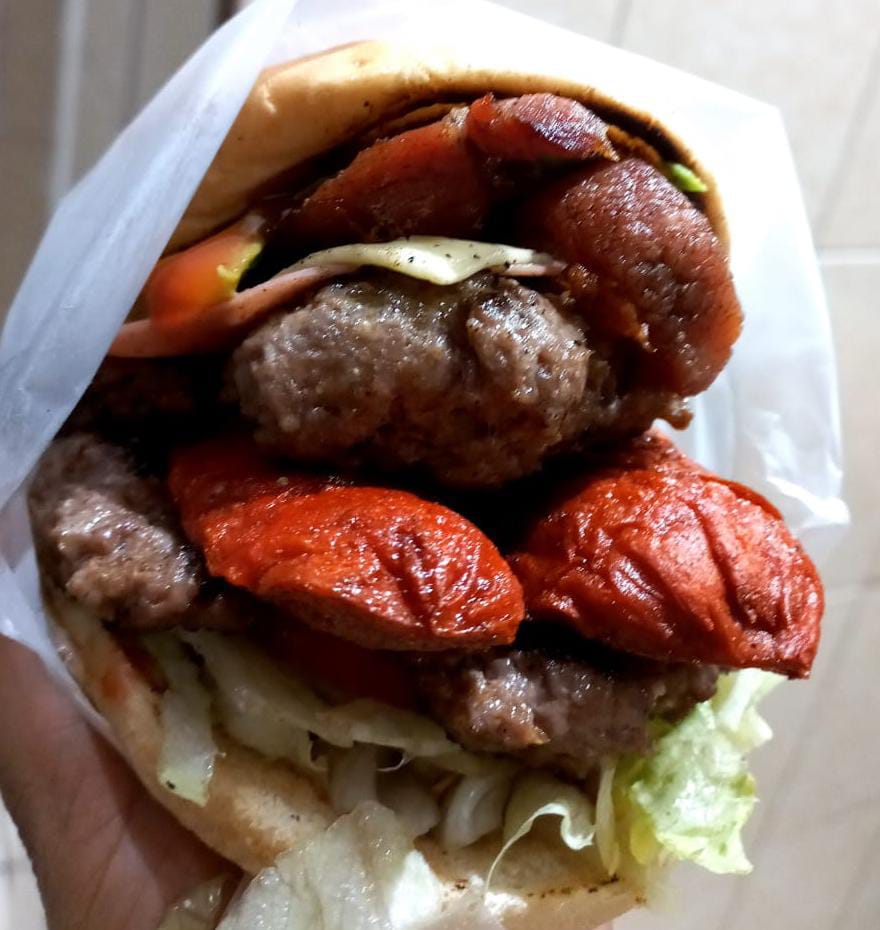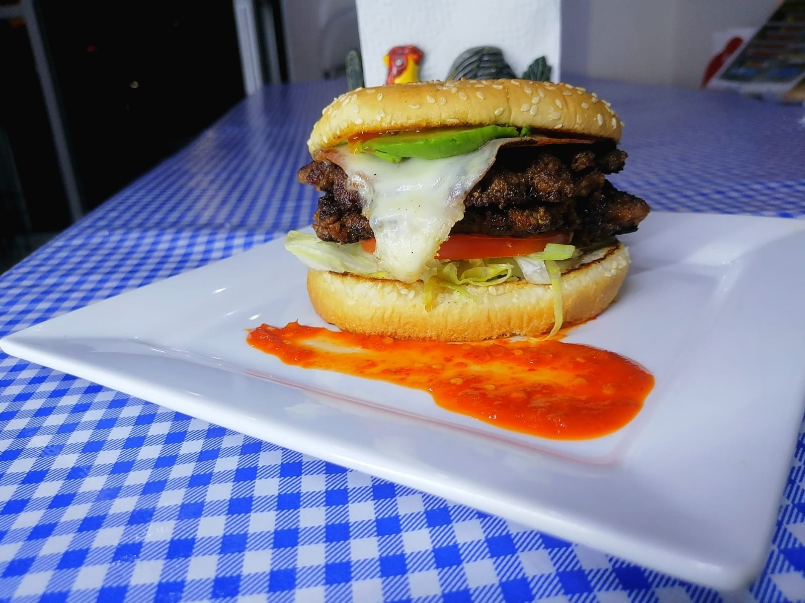 DOBLE CARNE,JAMON ,QUESO AGUACATE Y ADEREZOS.