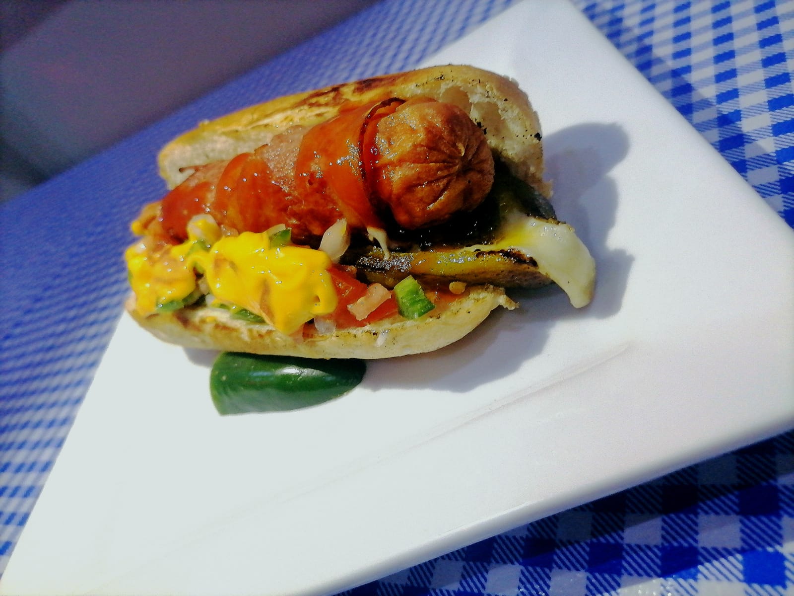 2 CARNES ,SALCHICHA P|ASAR, JAMON, QUESO AGUACATE Y ADEREZOS.