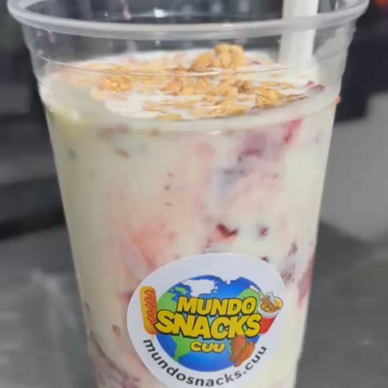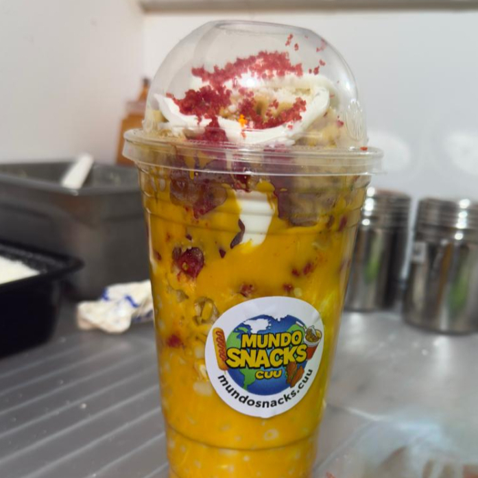 Deliciosos mangos con crema en vaso de 1/2 Litro, agrega tu topping favorito.