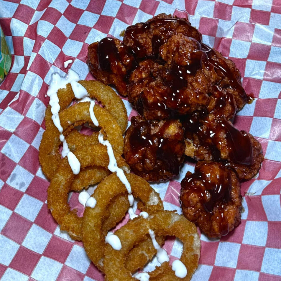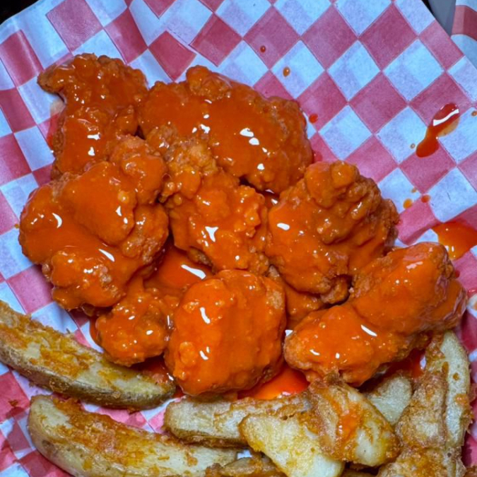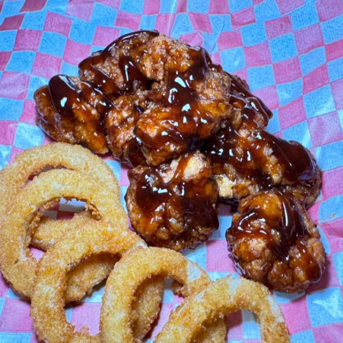 Trozos de pollo sin hueso empanizados y fritos, bañados de tu salsa preferida
