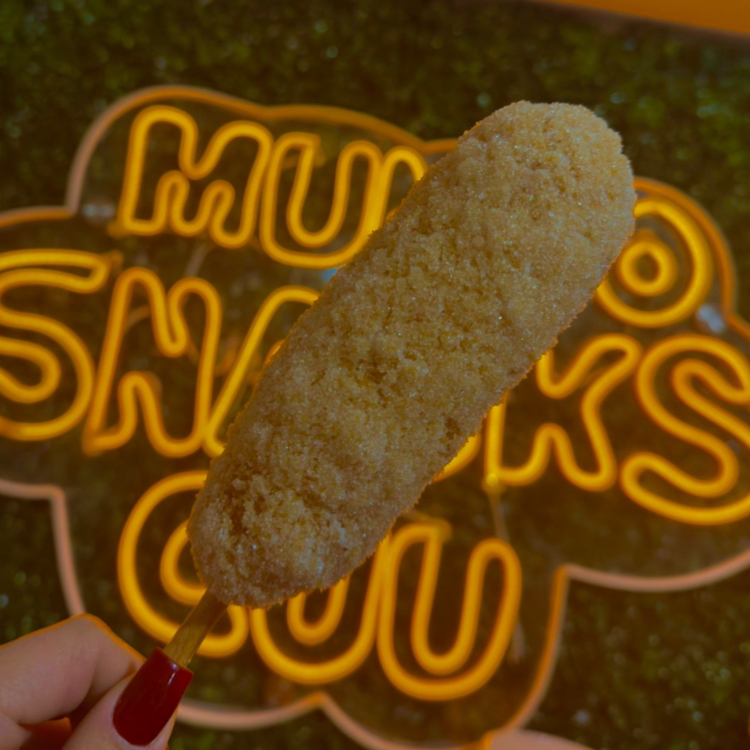 Banderilla con masa coreana rellena de queso empanizada con panko, pidela con el empanizado de tu preferencia.