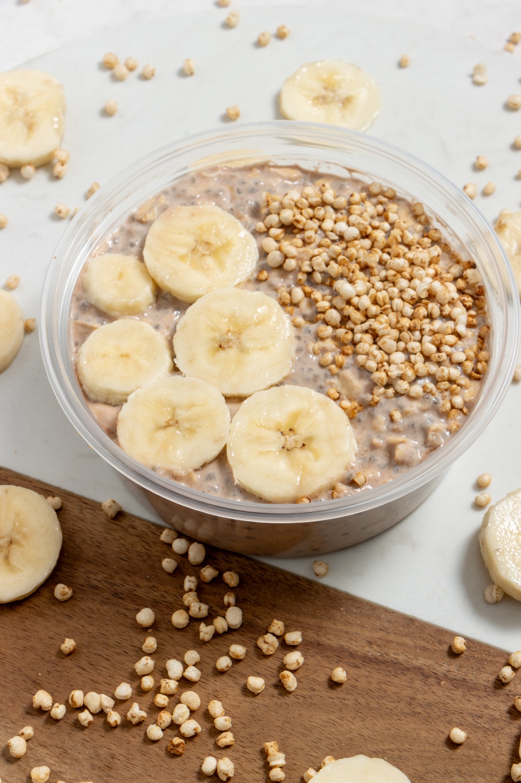 plátano, granola, yogurth y leche