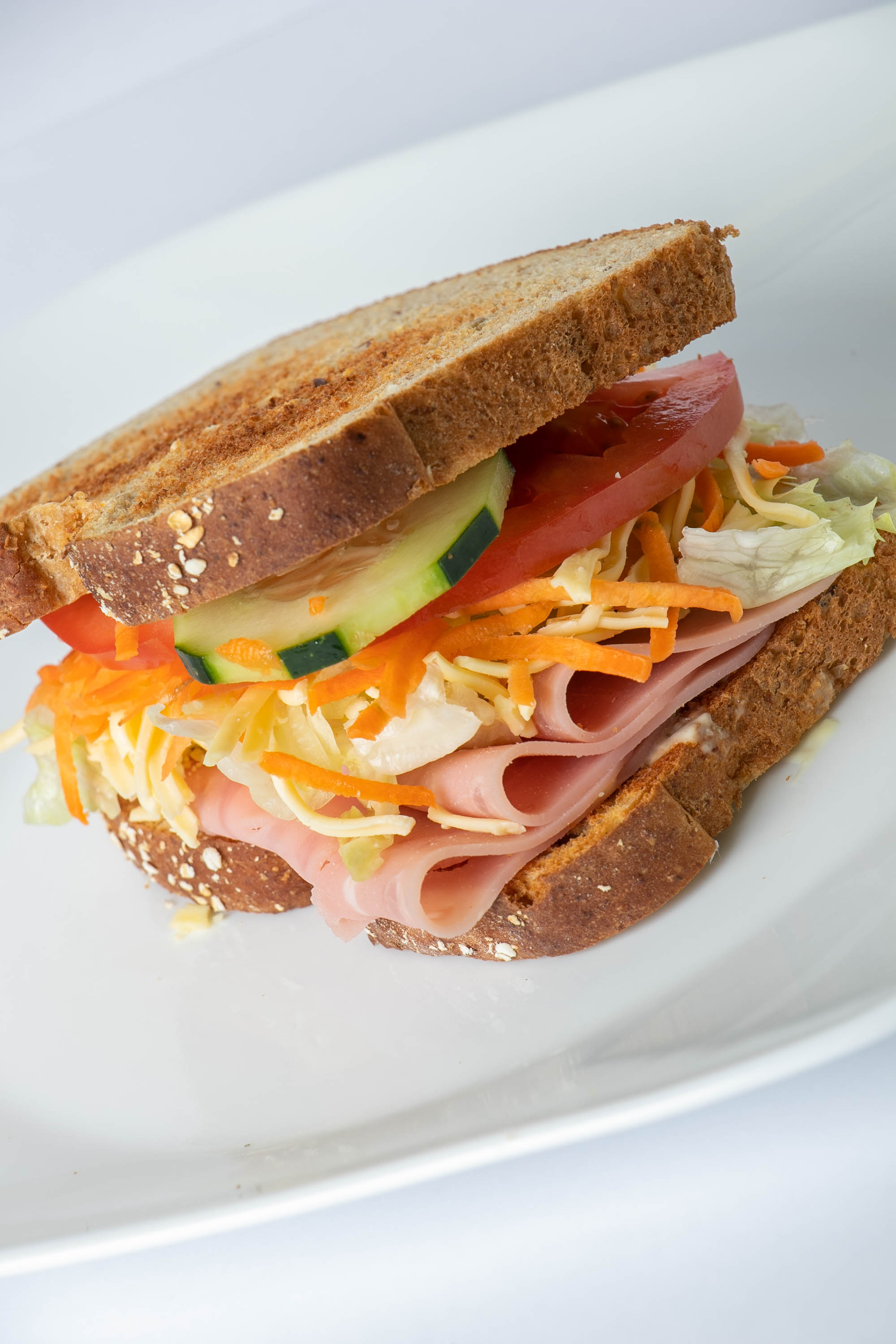 jamón de pavo, pechuga de pavo, salami, queso y verdura ( lechuga, tomate, zanahoria y pepino )