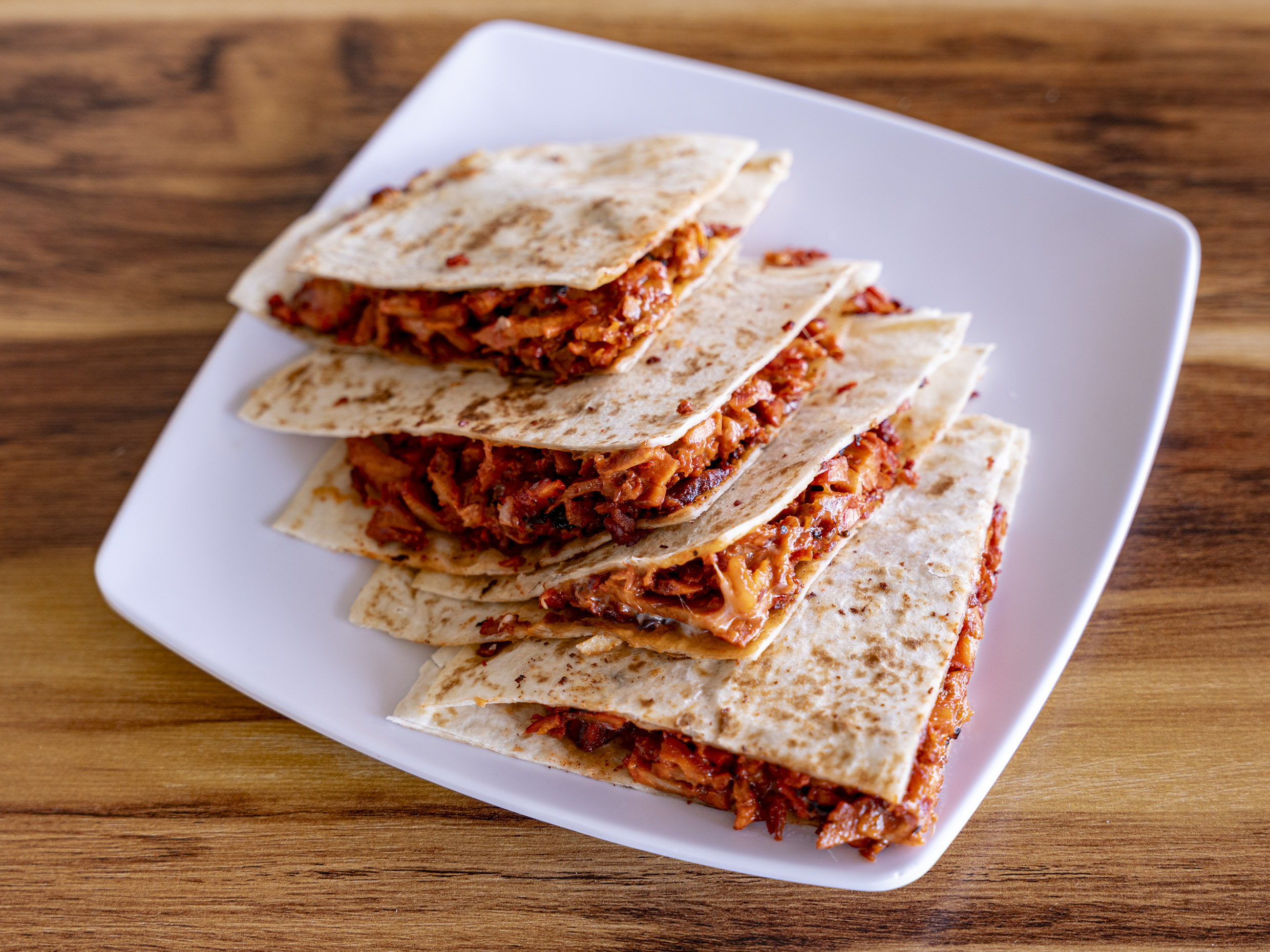 En tortilla de harina con queso Chihuahua gratinado y jamón. Incluye limones y salsa a elegir.