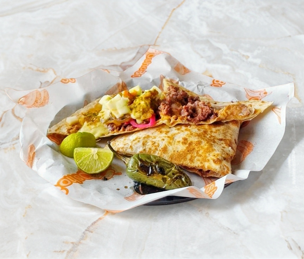 Tortilla de Harina + Frijoles + Queso Asadero + Bistec
