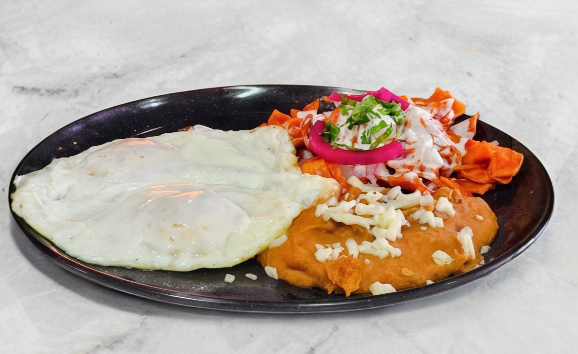 Huevos estrellados + Frijoles + Chilaquiles en tu salsa favorita