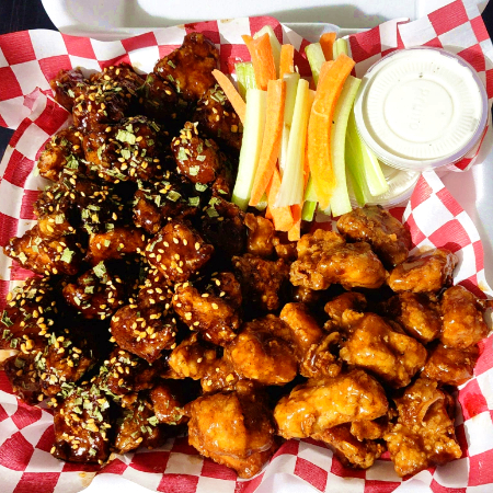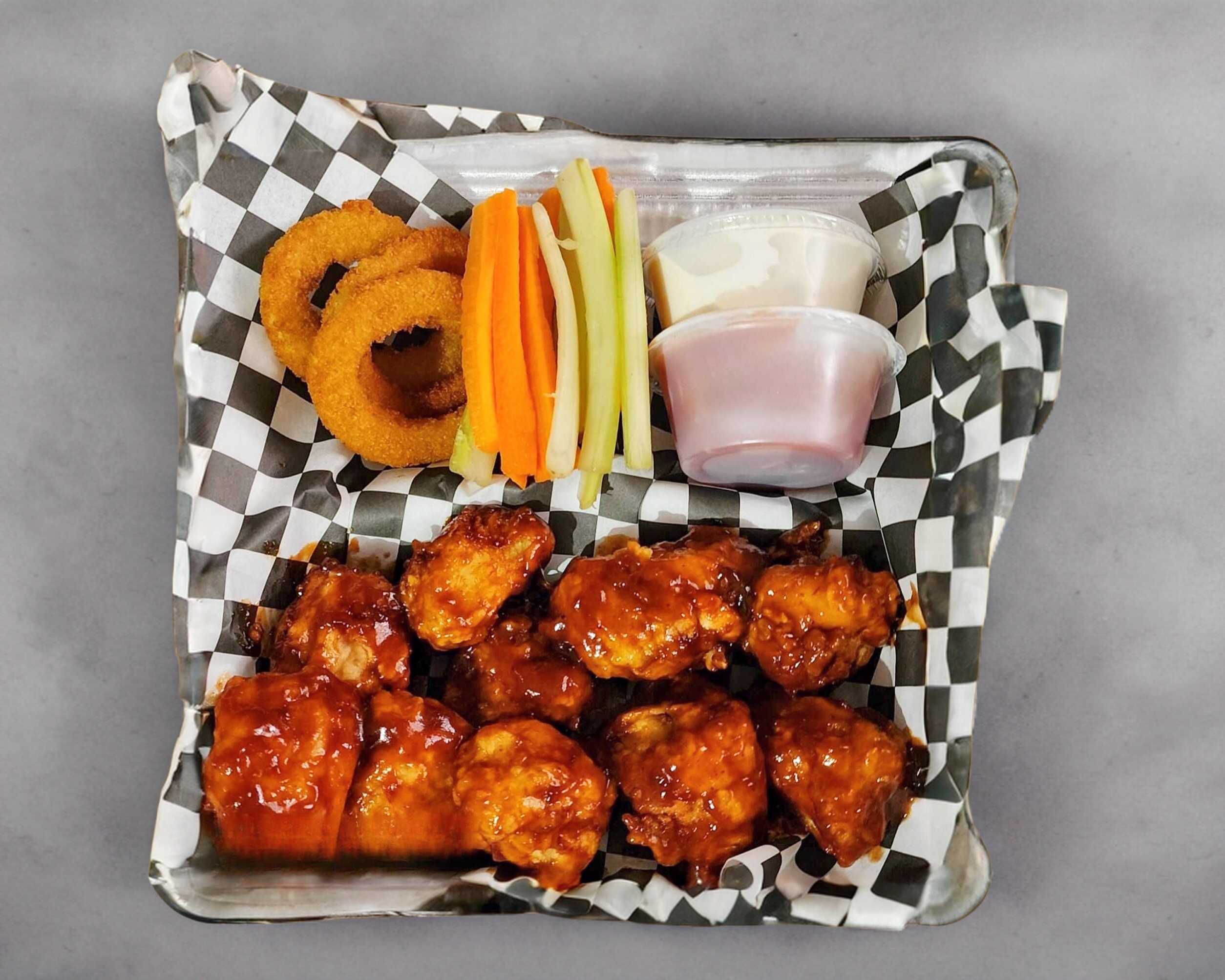 1 kg de boneless acompañados con verduras y aderezo ranch, hasta 4 salsas