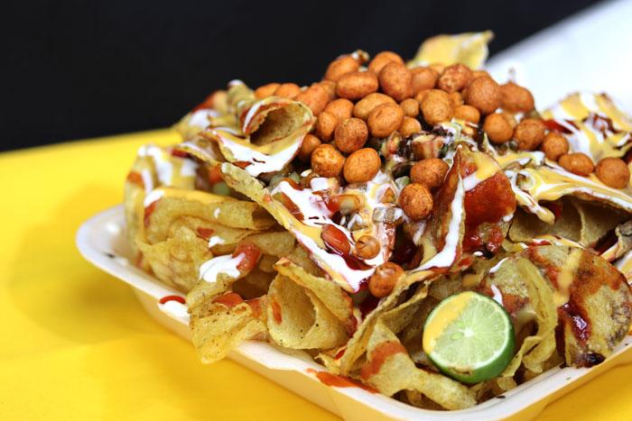 Con pepeino, cacahuate, serpentina, banderilla, salsas y limón.