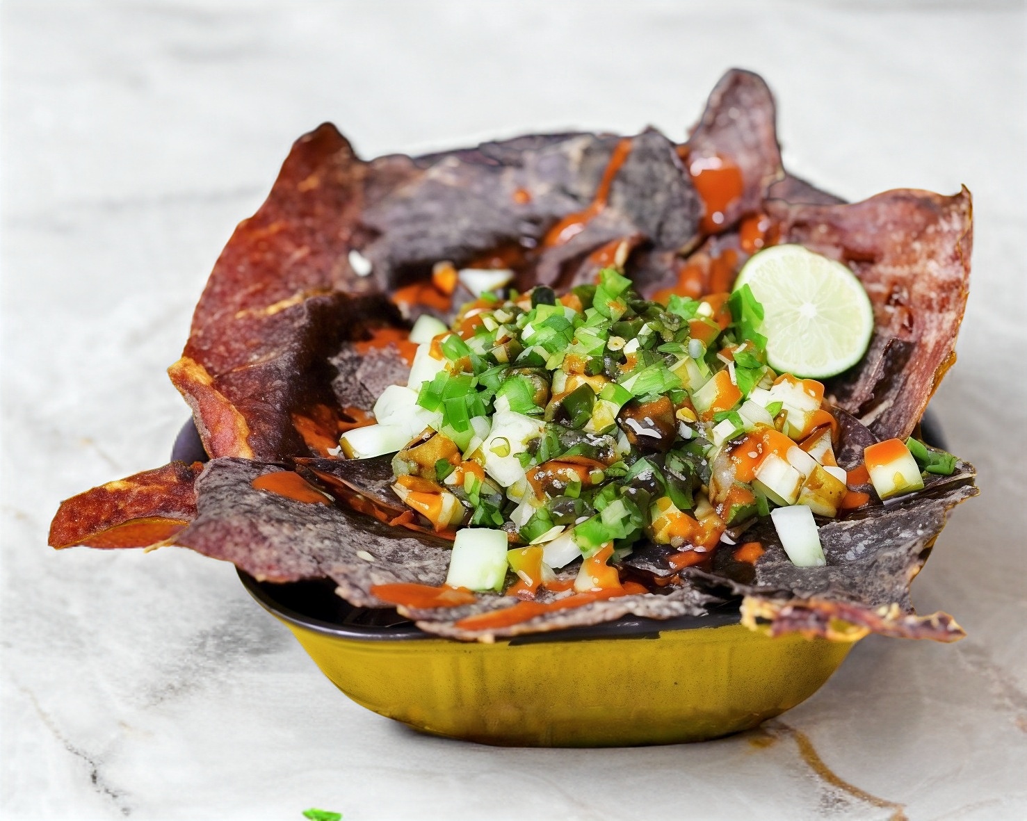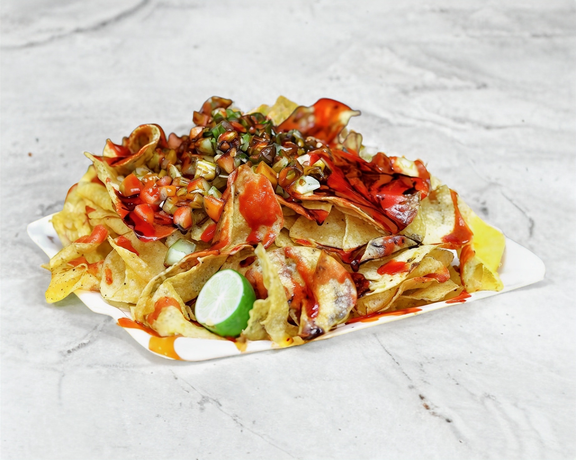 Pepino, pico de gallo, salsas y limón.