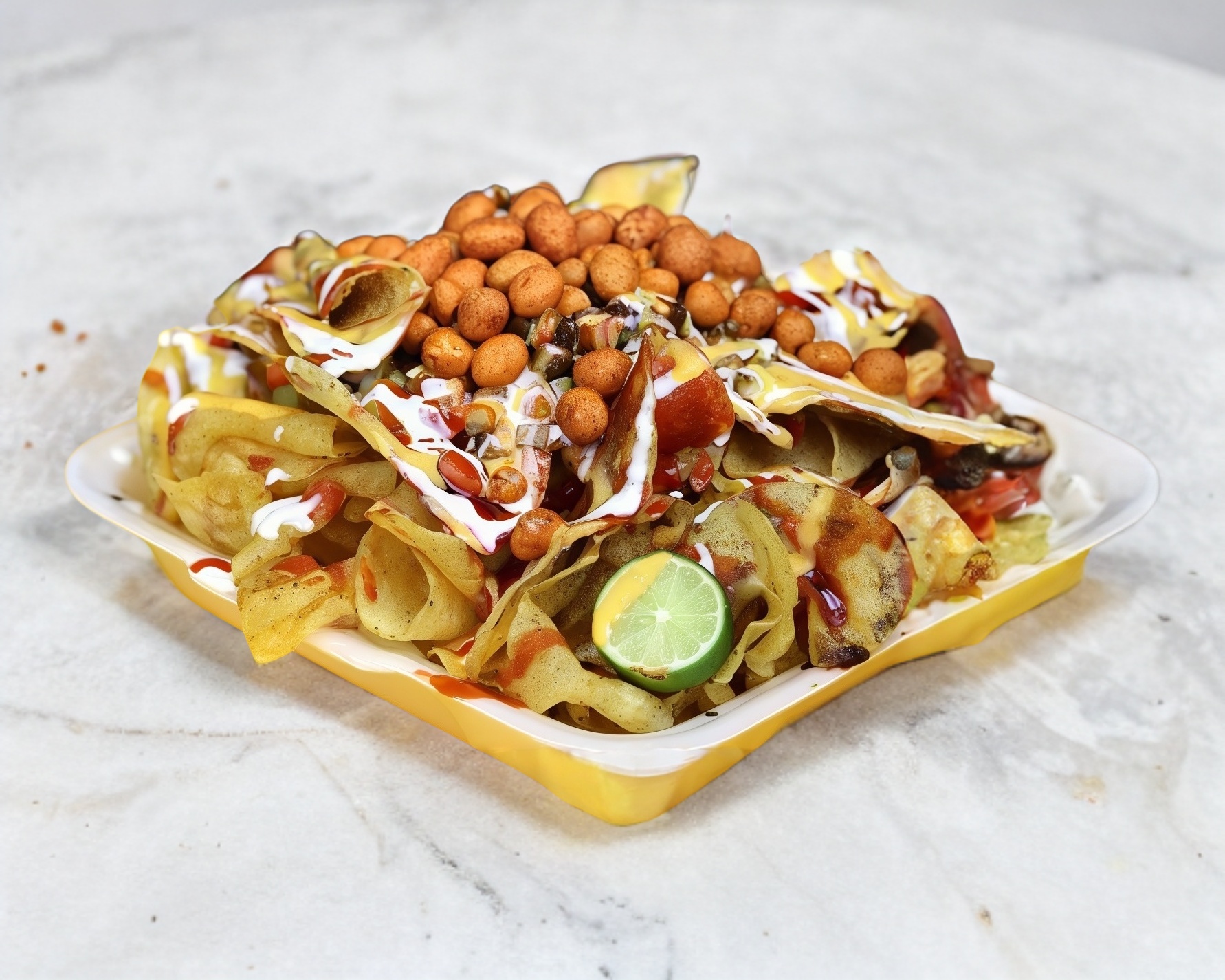 Pepino, pico de gallo, queso, crema, tocino, cacahuate, salsas y limón.