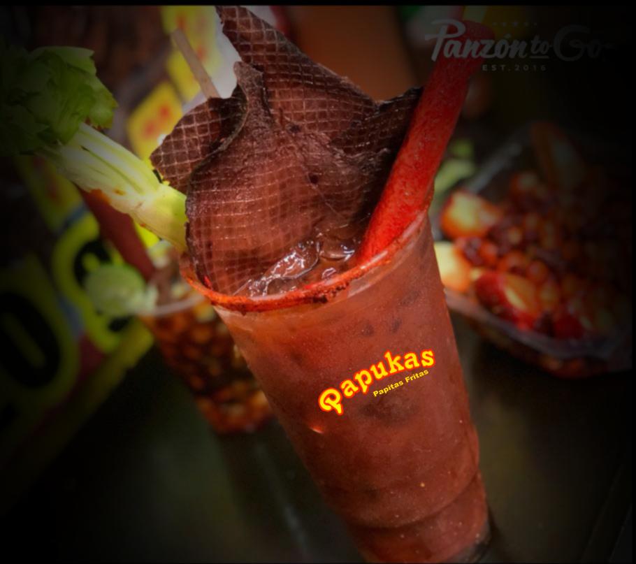 clamato preparado con nuestra receta secreta, apio, banderilla de tamarindo, carne seca y camaron fresco