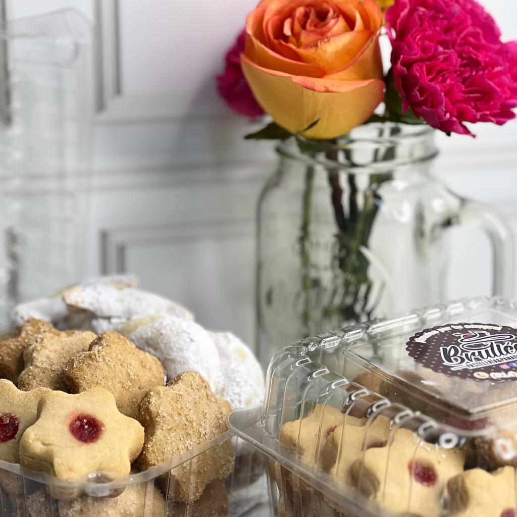 Caja de repostería con variedad (tradicional, fresa, coco, nuez, pasticeta).,420 gms