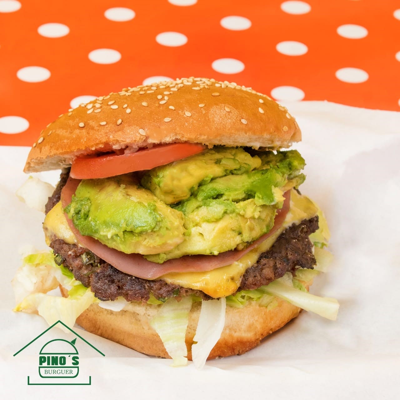 105 gr de carne, 20 gr de queso blanco, una rebanada de jamon , medio aguacate, lechuga , tomate, aderezo y pan