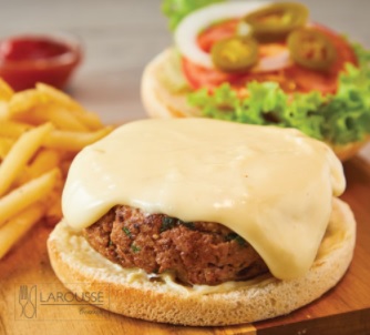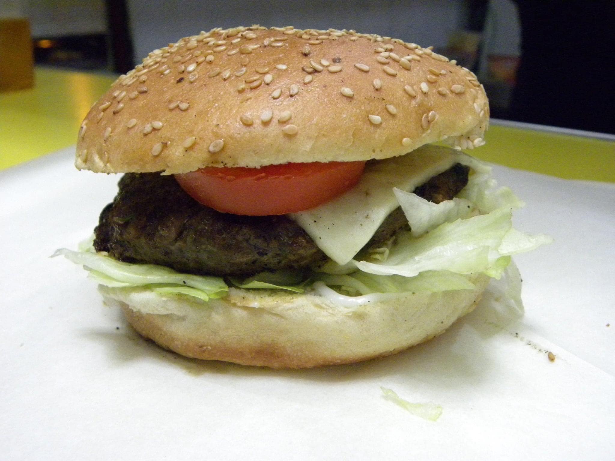 105 gr de carne, 20 gr de queso blanco, lechuga , tomate, aderezo y pan