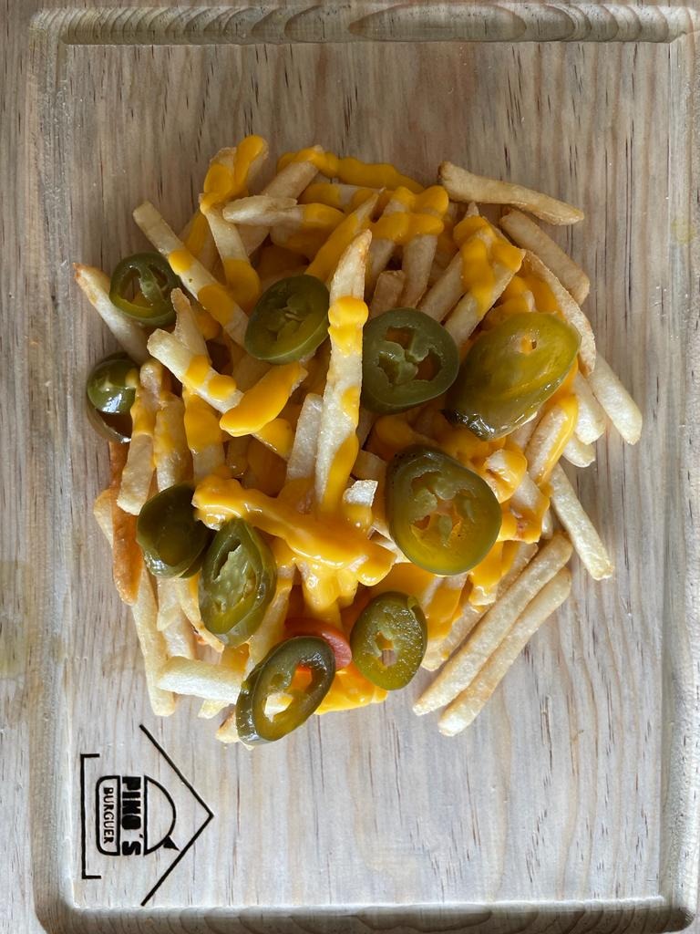 210 grs de papas francesa y 2 Oz de queso amarillo