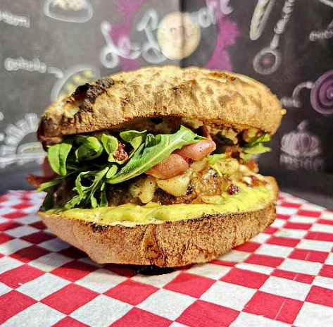 Delicioso pan de hogaza elaborado a partir de masa madre, nuestra hamburguesa italiana lleva una base de mayo pesto, hamburguesa 180 g, queso fundido, prochutto frito, tomate deshidratado, arugula y jocoque.