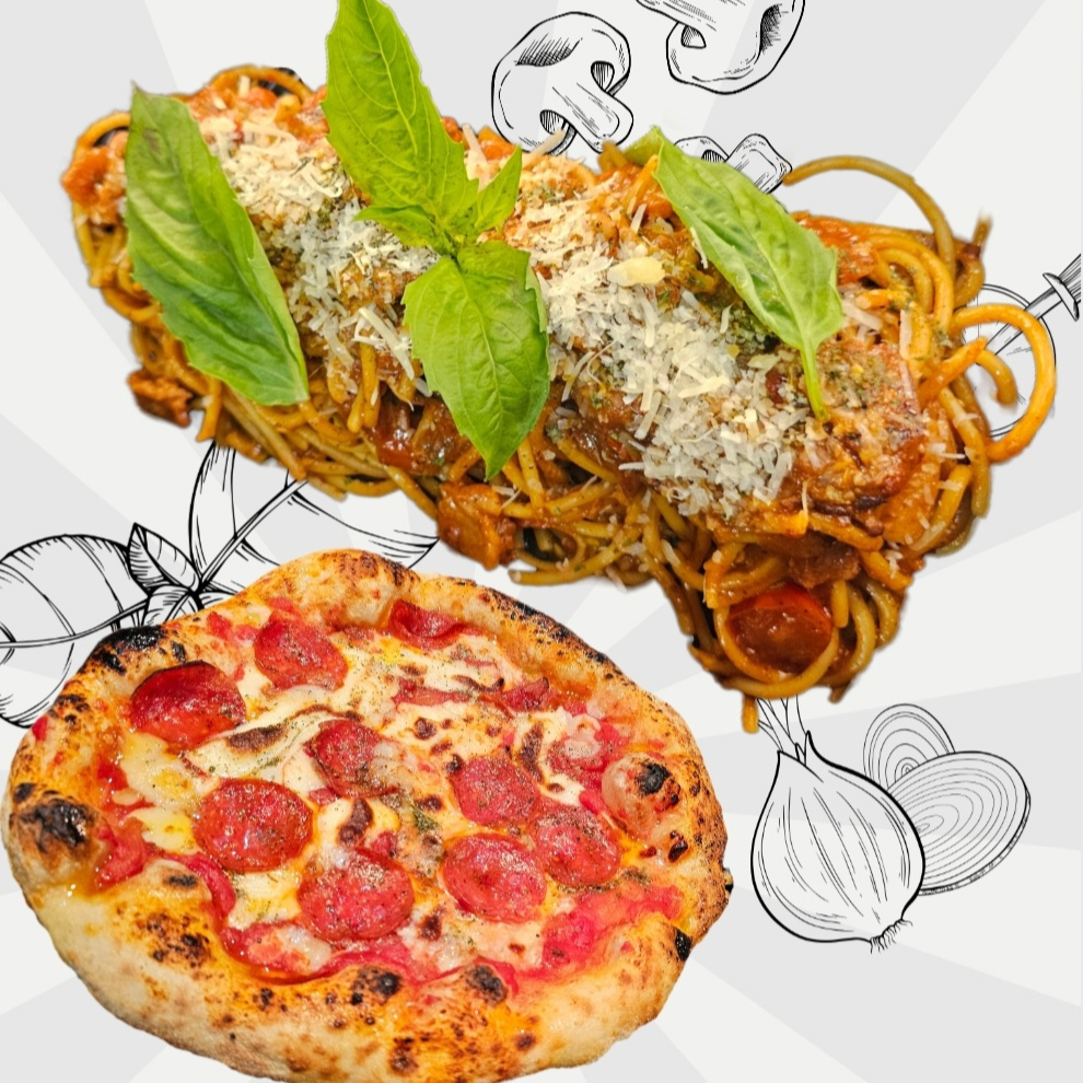 Que mejor manera de disfrutar tu pasta favorita en compañía de una pizza de pepperoni.