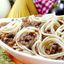 Cuidadosamente cocinado, acompañado de salsa de la casa, carne molida y pan de ajo