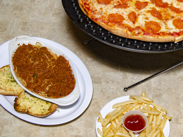 1 pizza de 1 ingrediente + 1 spaguetti la sierra +1 papas francesas y 1 refresco de 2 lts
