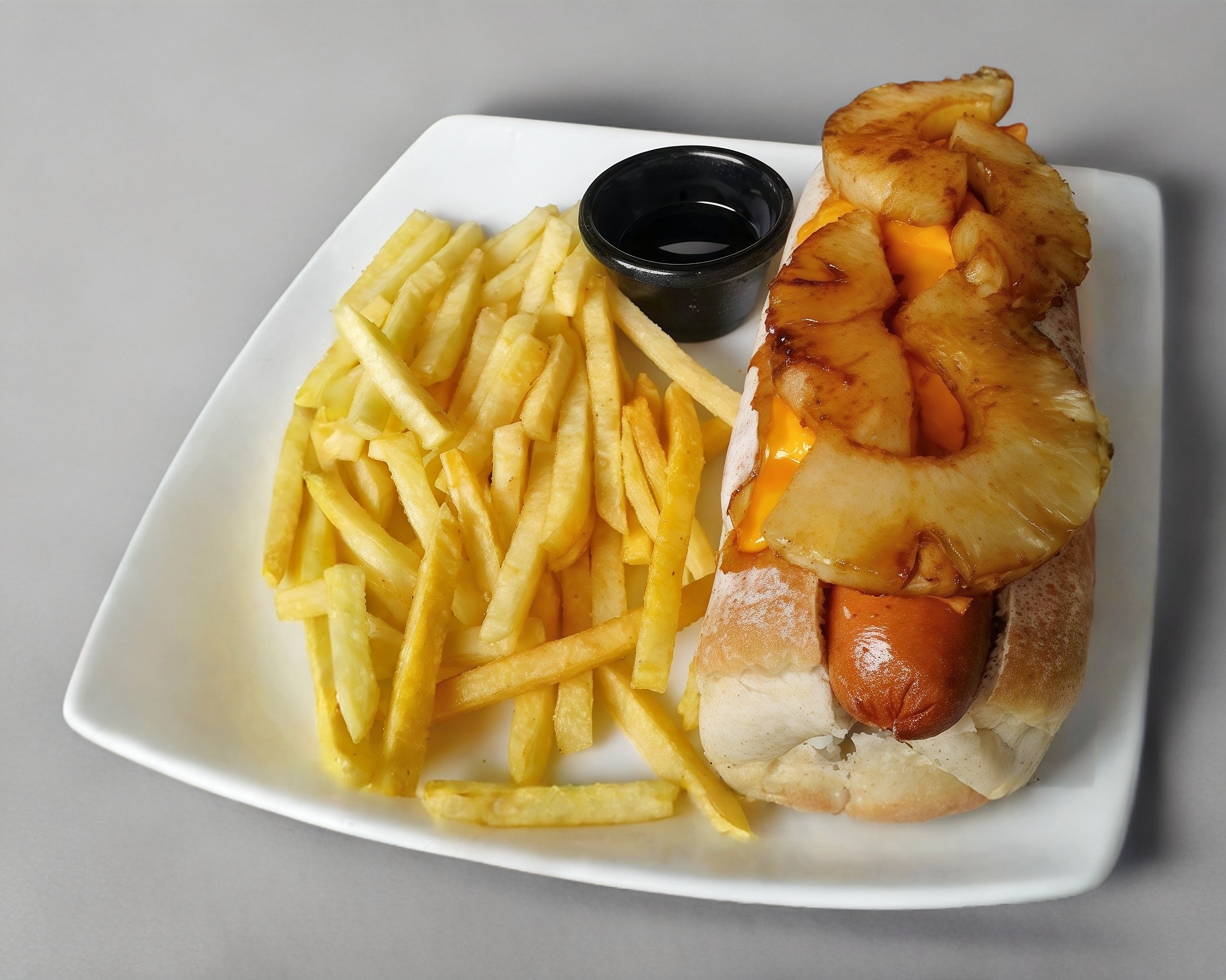 Pan, Salchicha de Pavo, Tocino, Piña, Queso Amarillo