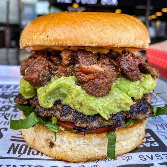 Doble carne 100% de res, doble queso laurel, aguacate, doble jamón, tocino o salami, lechuga, tomate. Incluye papas a la francesa.