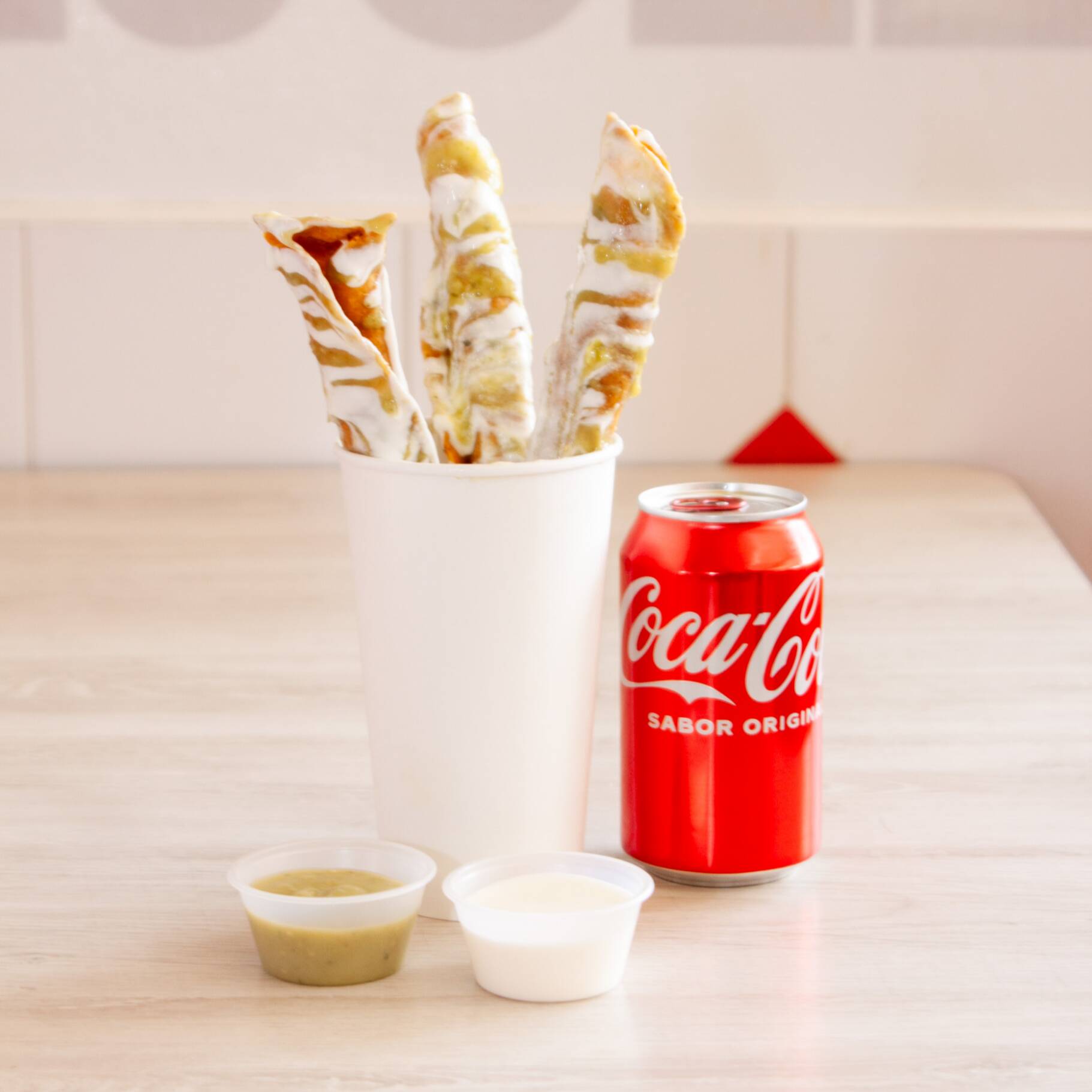 3 Flautas gigantes (21 cm), con esalada, salsa y crema