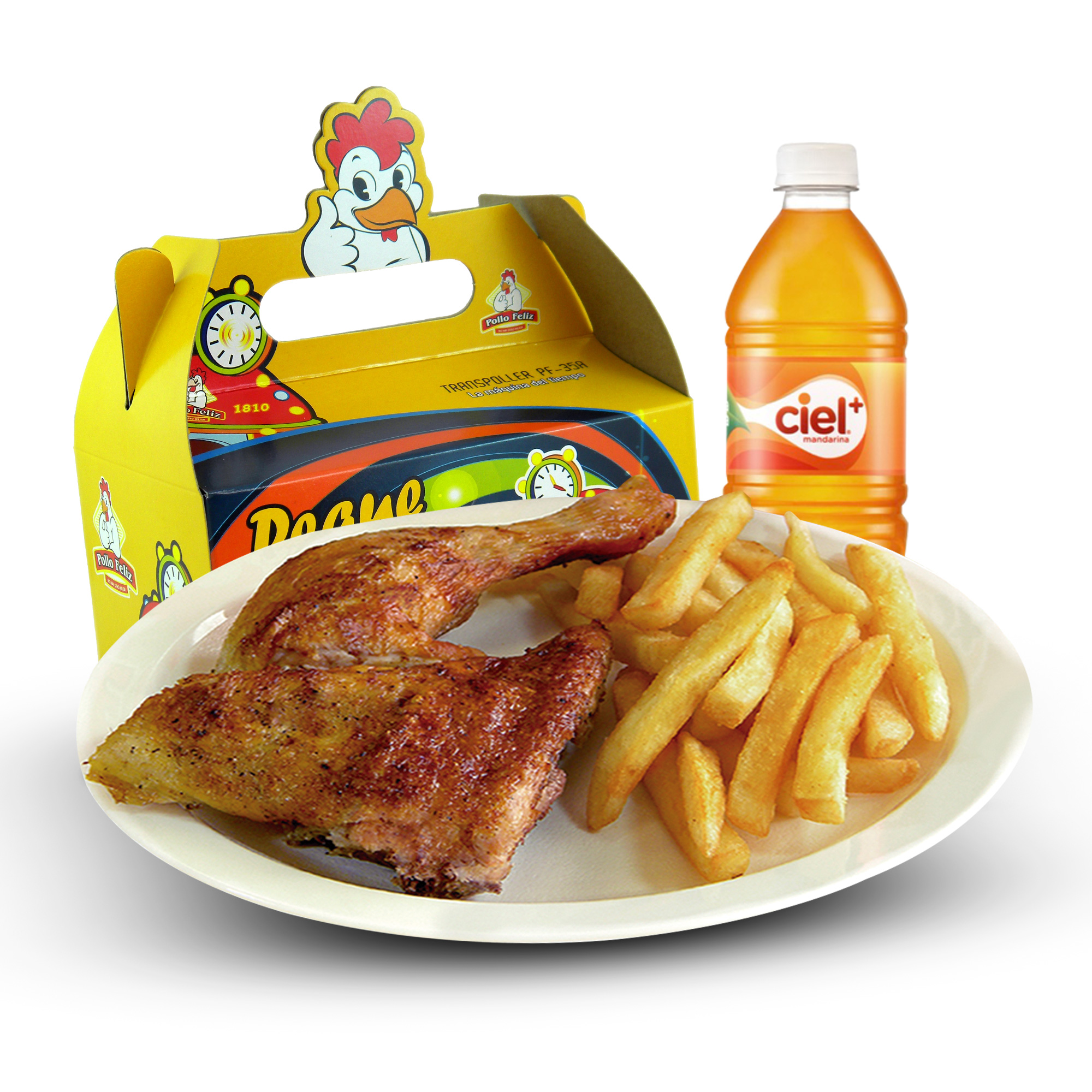 Incluye media orden de papas a la francesa, refresco de 355 ml