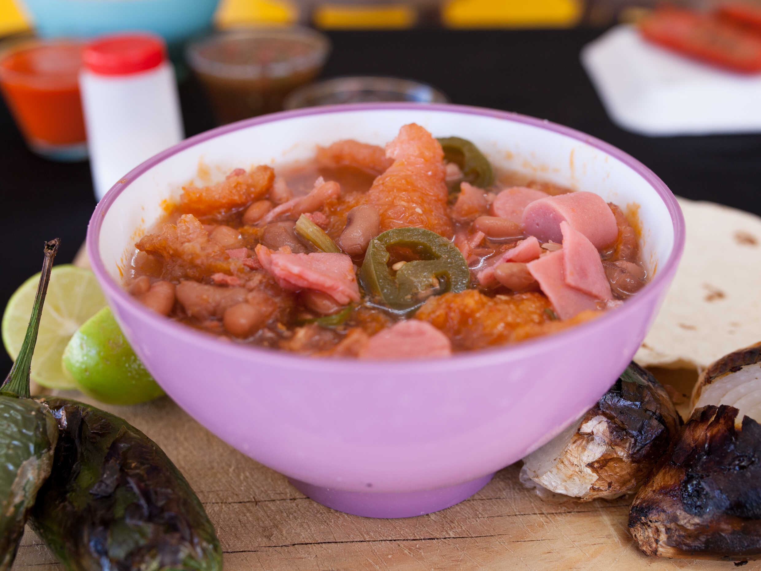 1 Pollo 2+ 2 salchichas, tus bebidas favoritas, nuestra riquísima salsa de tomate, chiles toreados, cebollitas tortillas y limones).