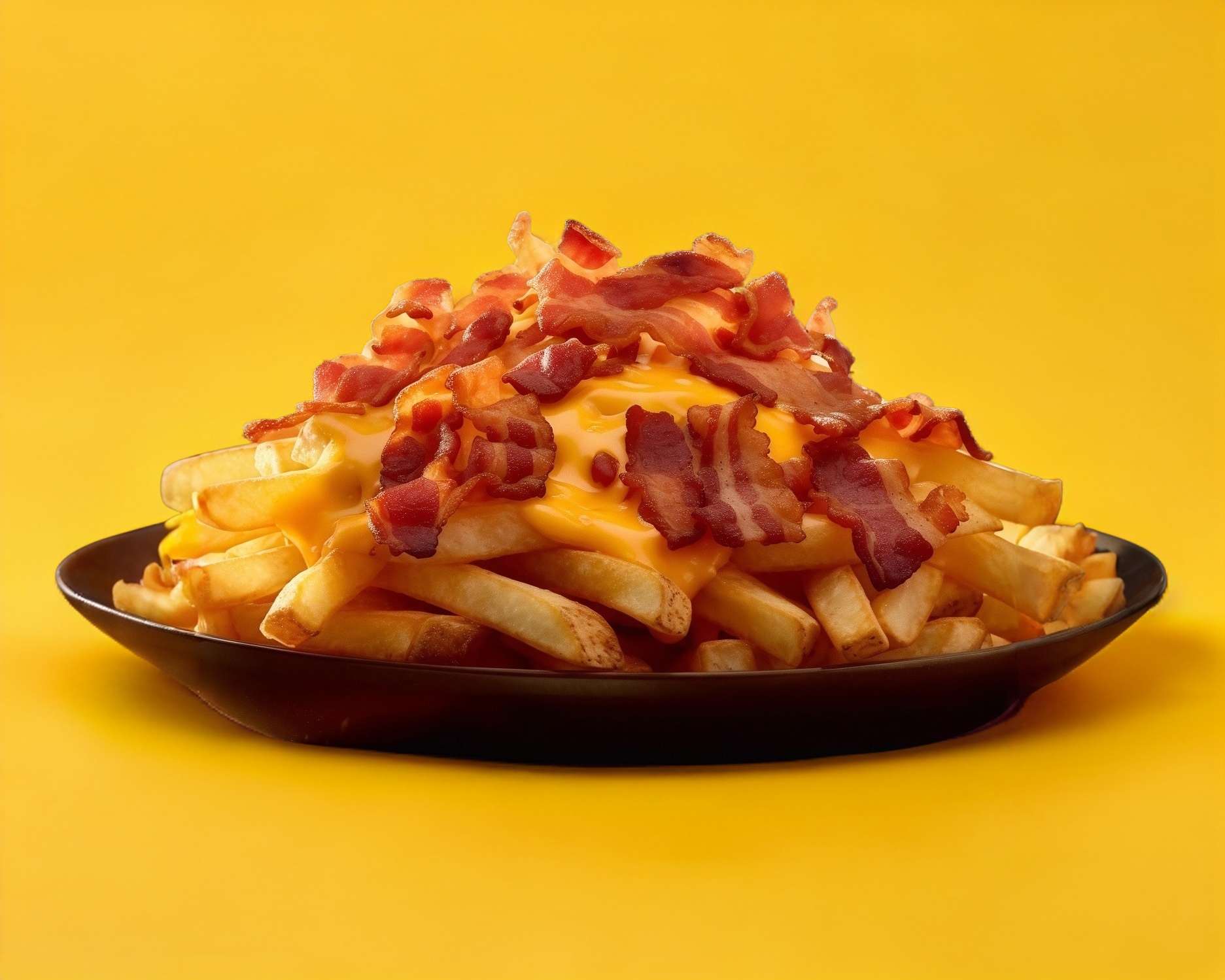 Papas fritas con queso amarillo y tocino 😋