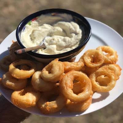 10 aros de cebolla con 2 topping de queso 🧀🫕